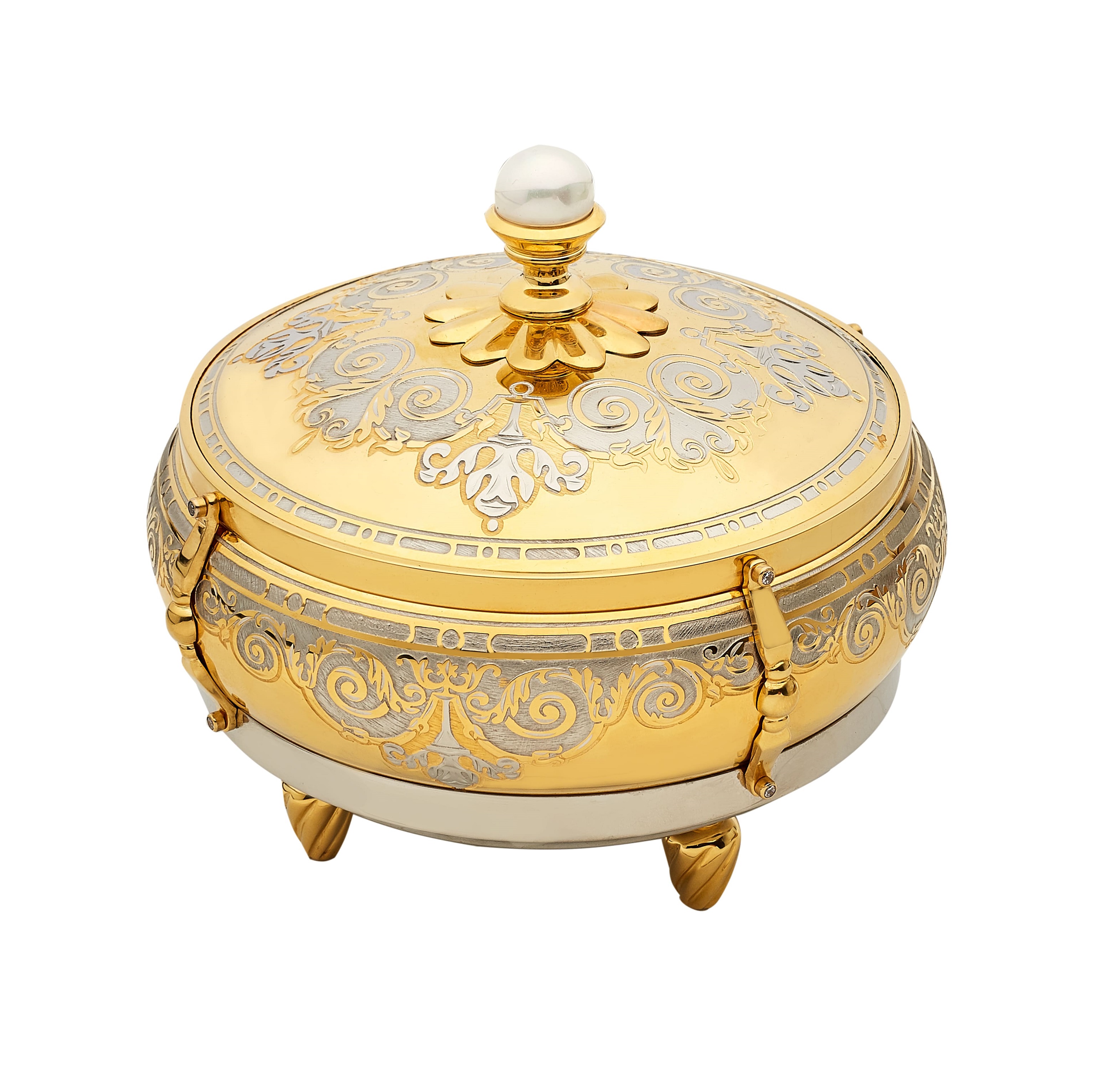 Изюминка этого уникального предмета интерьера – не только жемчужина, венчающая крышку, но и сложный, затейливый узор на дне шкатулки, в который можно всматриваться бесконечно и наслаждаться увиденным так же, как отношениями с истинной женщиной, внешняя притягательность и красота которой при более близком знакомстве сменяются душевной глубиной и многогранностью характера.